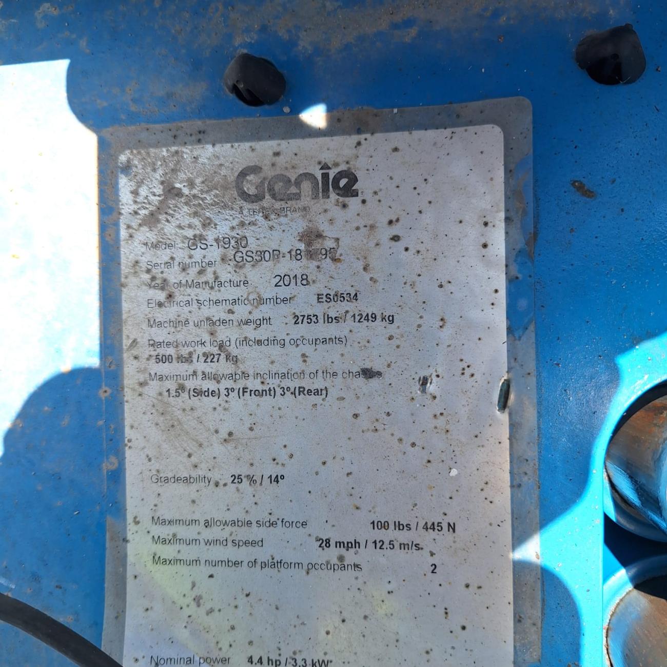PLATAFORMA TIJERAS GENIE GS-1930