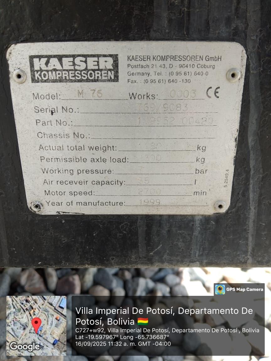 El modelo M76 de KAESER se refiere a un compresor de aire con un caudal de hasta 7 m³/min (metros cúbicos por minuto). Estos compresores son comunes en aplicaciones para obras, pudiendo ser utilizados en tareas como chorreado o la instalación de barreras protectoras